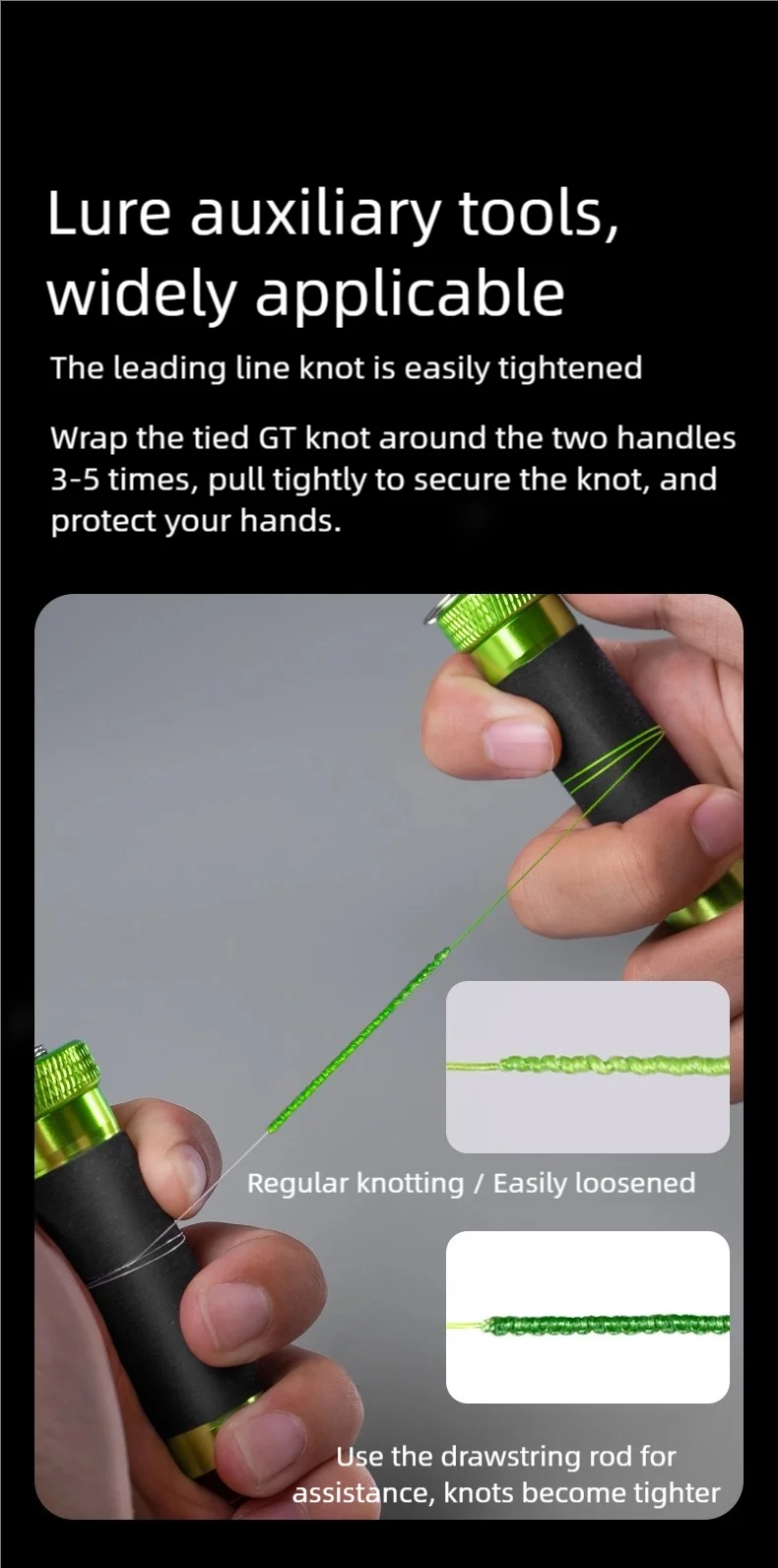 ① Snag Line Pulling Without Hand Injury, Hook Tying Without Line Damage:Structural design for auxiliary tensioning widens force-bearing surface, non-slip and hand-protective, preventing hand compression and line damage.