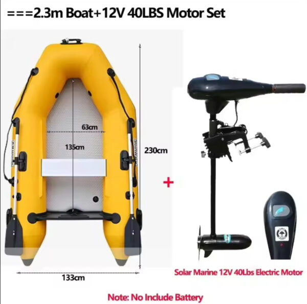 Inflatable Boat 2.3m With Electric Motor 40lbs Set 0.9mm PVC Wear Resistance Slat Air Deck Fishing Boat 2+1 Air-chambers